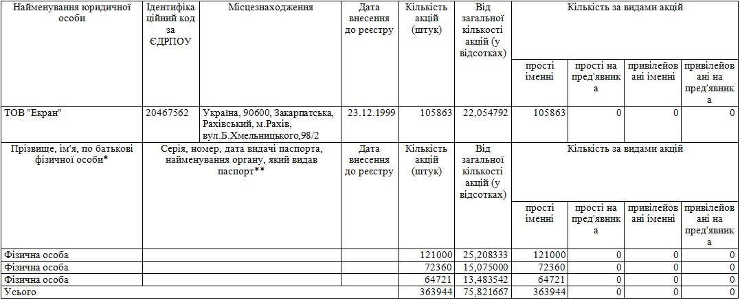 1.4. Місцезнаходження емітента 90600, Закарпатська, Рахівський, м.Рахів, вул.Миру,135
