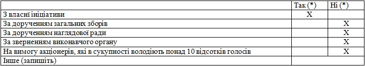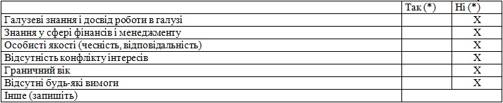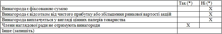 | Чи отримувало ваше товариство протягом останнього року платні послуги консультантів у сфері корпоративного управління чи фінансового менеджменту? (так/ні) | ні |