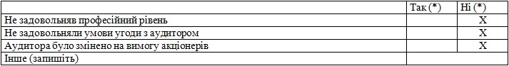 | Чи змінювало акціонерне товариство аудитора протягом останніх трьох років? (так/ні) | ні |