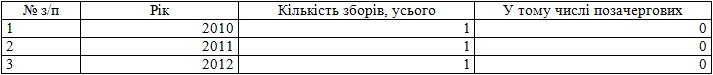 | Скільки разів на рік у середньому відбувалося засідання ревізійної комісії протягом останніх трьох років? | 1 |