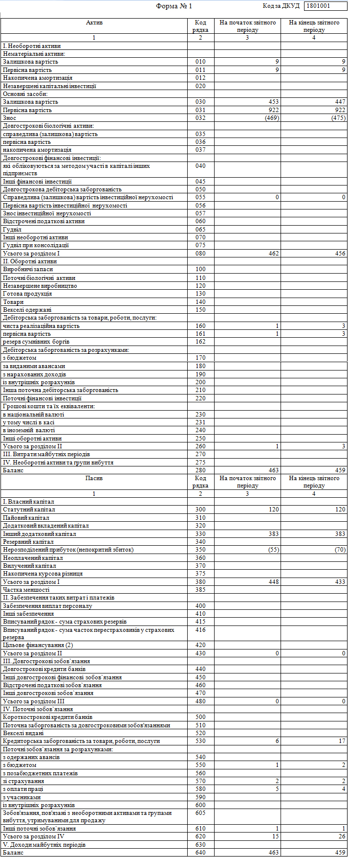Розрахунок чистих активів за звітний та попередній періоди здійснено згідно з Методичними рекомендаціями щодо визначення вартості чистих активів акціонерного товариства, схвалених рішенням ДКЦПФР від 17.11.2004 р. № 485. Розрахунок проведено за даними Балансу: розрахункова вартість чистих активів - різниця рядків 280, 430, 480, 620 та 630; статутний капітал - рядок 300; скоригований статутний капітал - різниця рядків 300, 360 та 370.