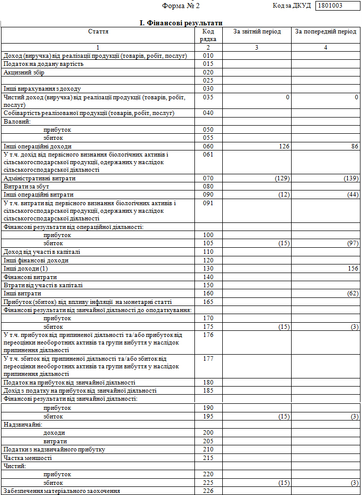 Від фінансово-господарської діяльності отримано 15 тис.грн збитків.