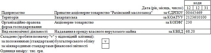 | 3.1.2. Скорочене найменування (за наявності) | ПрАТ"Рахівський маслозавод" |