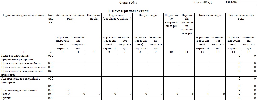 | З рядка 080 графа 5 | вартість нематеріальних активів, отриманих за рахунок цільових асигнувань | 084 |