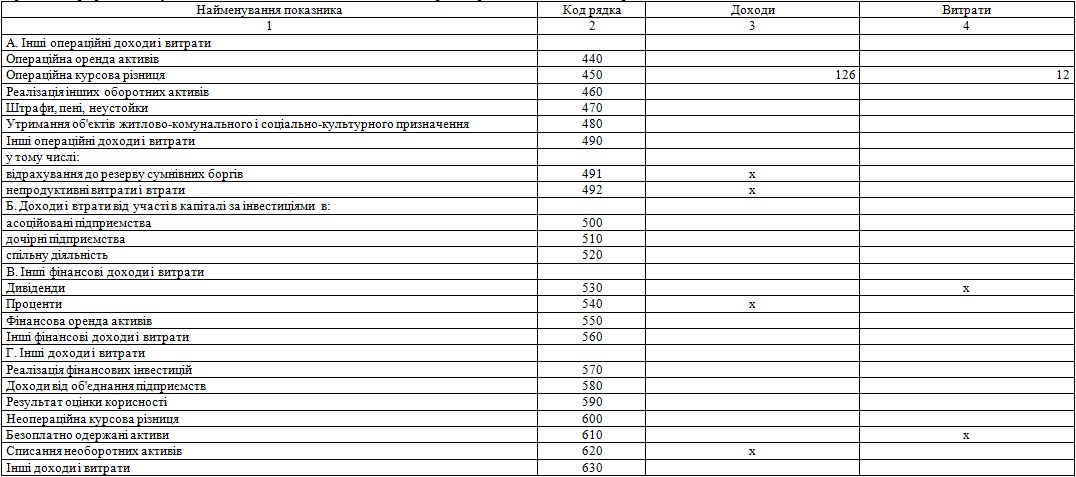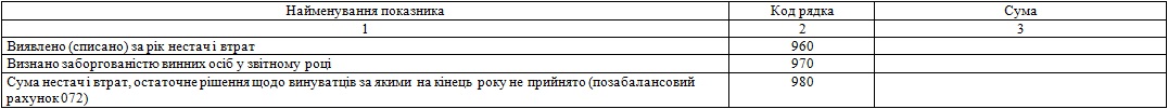 | залишкова вартість основних засобів, утрачених унаслідок надзвичайних подій | 2651 | |