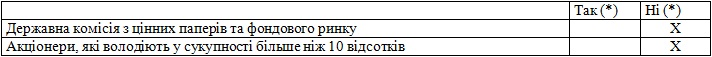 - Iнформацiя про рейтингове агентство - так як Товариство не укладало договори з рейтинговими агентствами та не проводило рейтингову оцiнку.