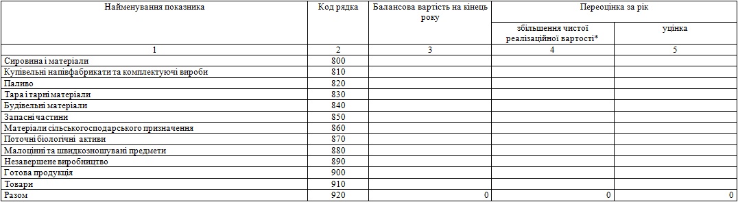 | З рядка 920 графа 3 Балансова вартість запасів: | відображених за чистою вартістю реалізації | 921 |