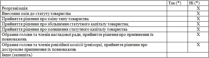 | 26. Копія(ї) протоколу(ів) загальних зборів емітента, що проводились у звітному році (для акціонерних товариств) (додається до паперової форми при поданні інформації до Комісії) | X |