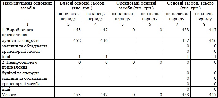 Зменшення залишкової вартостi основних засобiв вiдбулося за рахунок нарахування амортизацiї. Частина основних засобiв (складськi примiщення) зданi в оренду строком на один рiк. Основнi засоби являються власнiстю пiдприємства i не знаходяться в заставi.