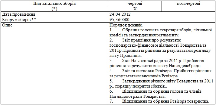 | 6. Інформація про загальні збори акціонерів | X |